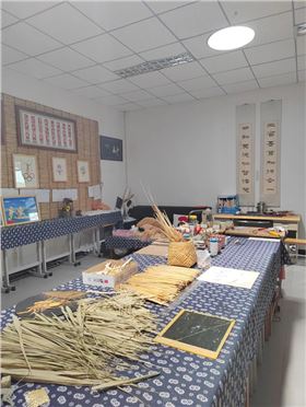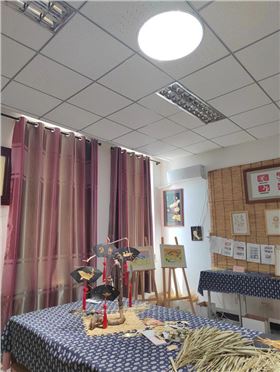 端村學(xué)校蘆葦工藝教室,學(xué)生在上課制作工藝品過程中,用眼長期高度集中,為避免學(xué)生視覺疲勞,保護視網(wǎng)膜,避免近視,通過安裝無電照明系統(tǒng),把太陽光、自然光直接引到教室,使教室內(nèi)光線達到全光譜、無頻閃、顯色指數(shù)97以上,可避免作品產(chǎn)生色差,為學(xué)生營造無以倫比的光照環(huán)境。