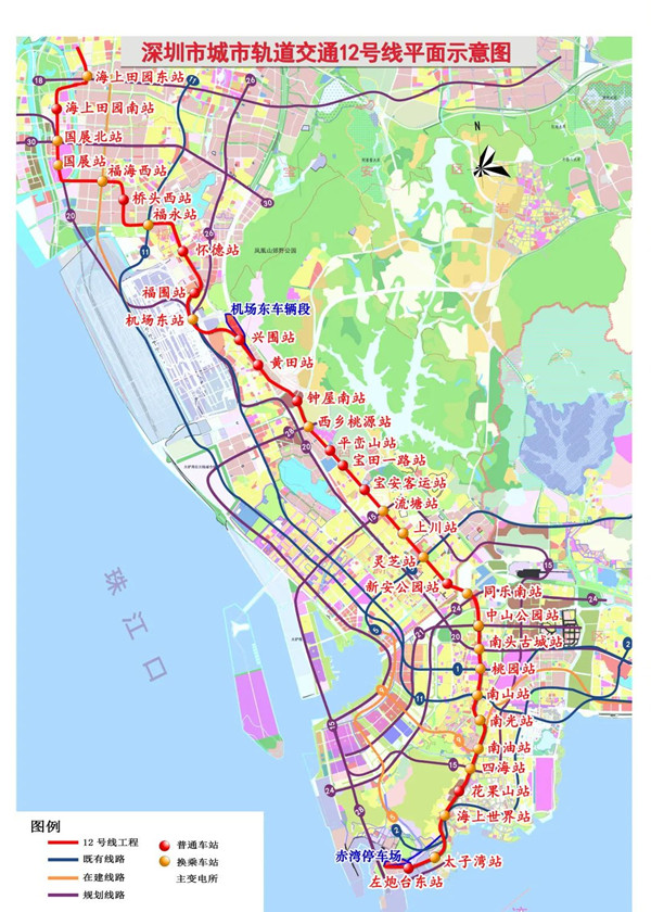 深圳地鐵12號(hào)線是深圳市軌道交通線網(wǎng)近期建設(shè)規(guī)劃中唯一一條南北穿越寶安老城區(qū)和南山區(qū)的線路。串聯(lián)起了南山中心區(qū)、寶安中心區(qū)、福永片區(qū)、大空港及會(huì)展片區(qū)的軌道交通骨干線路,是支撐深圳市西部發(fā)展軸帶建設(shè),支撐前海(蛇口)自貿(mào)區(qū)、空港新城地區(qū)城市發(fā)展,緩解南山中心區(qū)、寶安中心區(qū)交通擁堵的普速線路。線路全長約 40.6 km,全線采用地下敷設(shè)方式;共設(shè)站 33 座(其中換乘站 18 座)。深圳地鐵12號(hào)線新安公園站位于新安二路與新圳路之間!