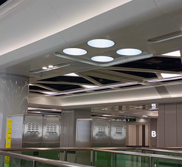 無電照明系統(tǒng)室直接采集室外自然光、太陽光,過濾90%以上的有害紫外線、紅外線,導(dǎo)入室內(nèi)的光線達(dá)到全光譜、無頻顯、無眩光,顯色指數(shù)達(dá)97以上;讓地鐵車站內(nèi)工作人員以及奔波疲勞的旅客沐浴在自然的光照之中,增加來往旅客的舒適感。