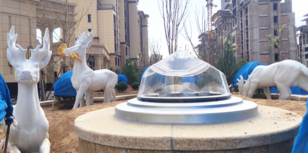 花型和圓形的蹲座與無電照明系統(tǒng)鉆石型采光器相得益彰,極具藝術(shù)氣息,瞬間就拉升整個小區(qū)的綠色景觀品位!目前為止,筆者也是第一次見到大理石花型的墩座,高檔小區(qū)配置就是高規(guī)格!