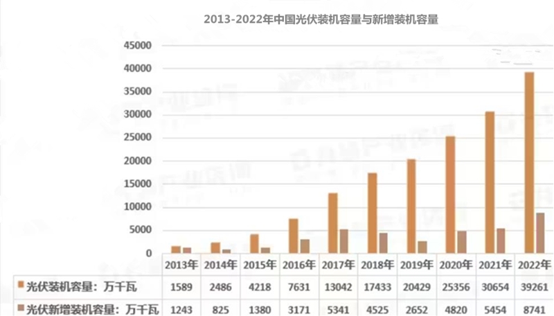 中電聯(lián)、共研產(chǎn)業(yè)咨詢:2022年,我國新增光伏發(fā)電并網(wǎng)裝機容量約8741萬千瓦,累計裝機容量39261萬千瓦,同比增長28.07%。以平均6000元/千瓦造價計算,2022年光伏市場容量約達2.36萬億元。而按照光能寶盒發(fā)電系統(tǒng)能夠替代30%的發(fā)電量來計算,則2022年光能寶盒發(fā)電系統(tǒng)的市場容量約為7080億元。
